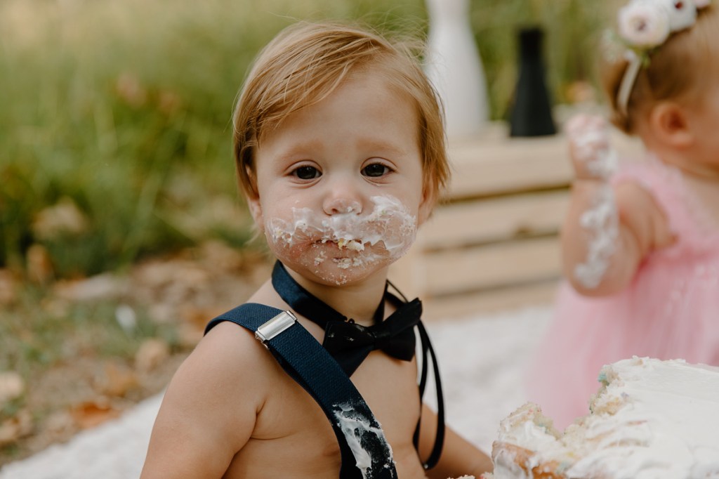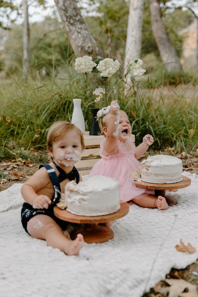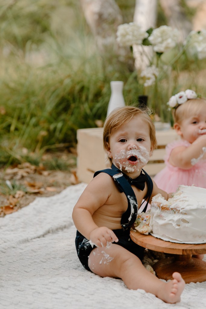 this family and I go way way back. back before the twins and their first born was rolling solo! Here we are are a few years down the road and celebrating their twins first birthday with an epic smash cake session in the park.
